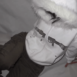 Yeti grunge y2k Bedazzled White Fur Sweatshirt men and women