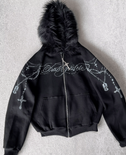 American Retro Rock Gothic Graphic Fur Sweatshirt Men's Y2K